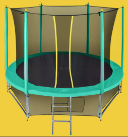 - Комплектация: батут, защитный мат, защитная сеть, нижняя защитная сеть, лестница