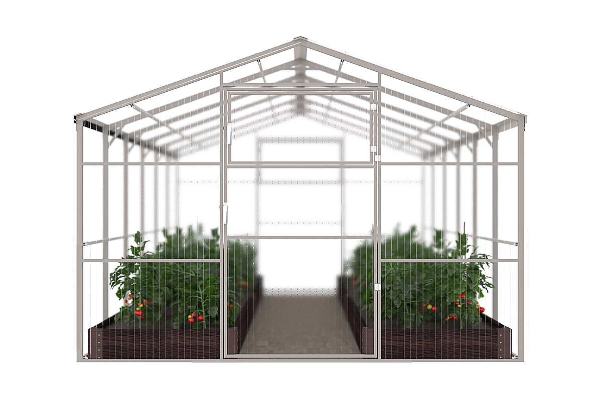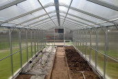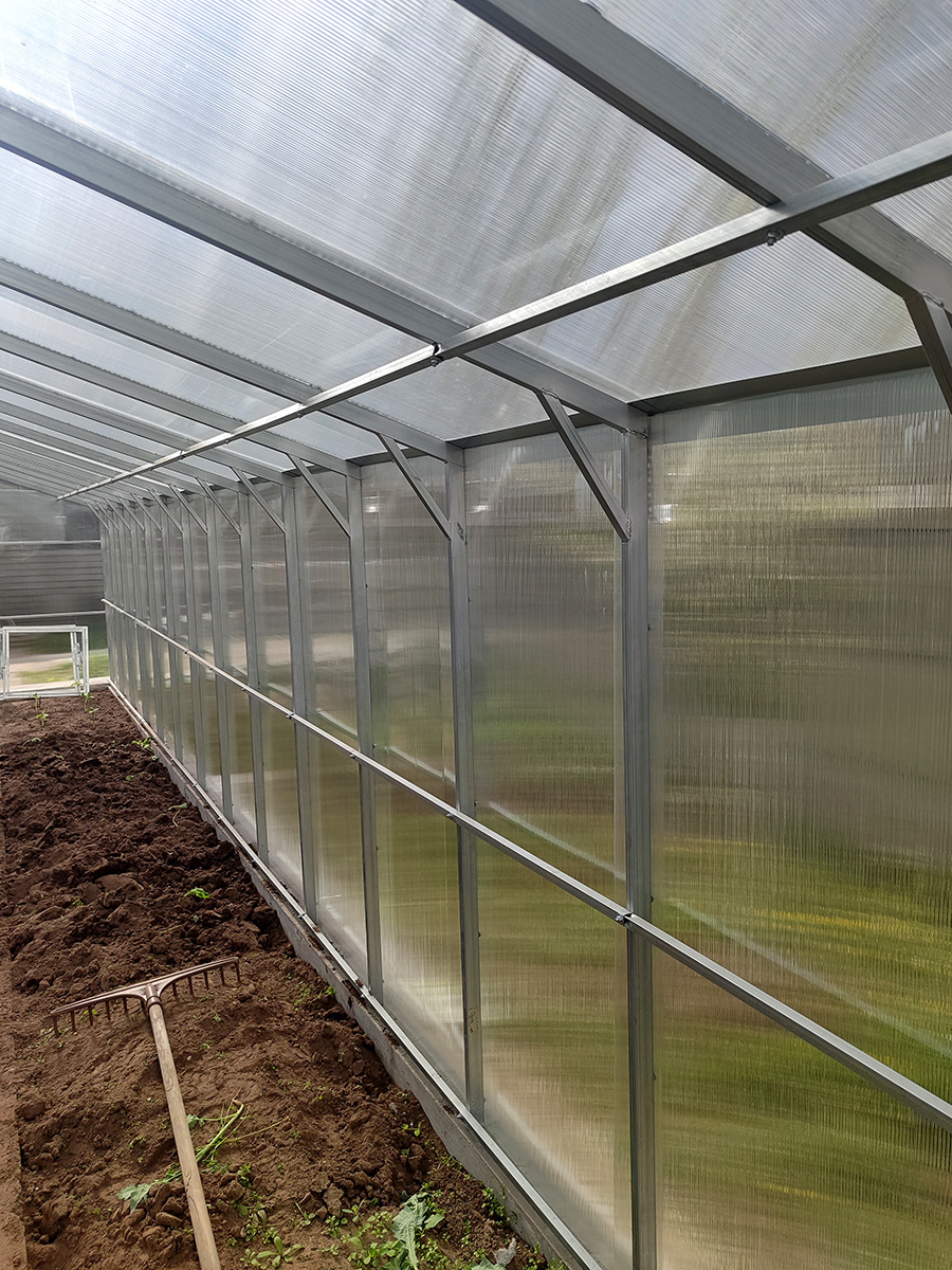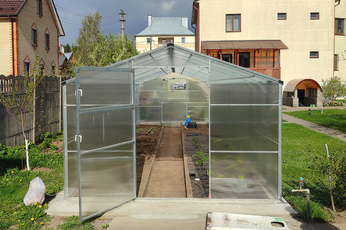 В торцах предусмотрены две двери с форточками для улучшения проветривания теплицы.