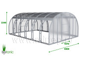 Для удобства транспортировки торцы и дуги изготавливаются разборными. Высота теплицы составляет 2,24 м, ширина 4 м, длина 3,988; 5,952; 7,916; 9,88 метров и т. д. (в качестве удлинения теплицы используются доборы ~ 1,964 м).