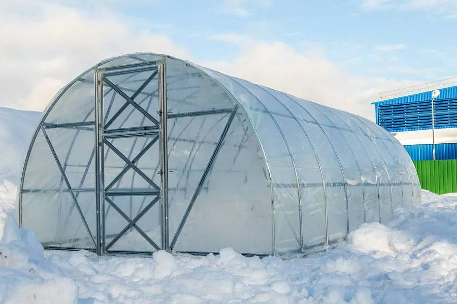 В качестве покрытия можно использовать сотовый поликарбонат, пленку или совместить материалы: торцы сделать из поликарбоната, а верх теплицы накрыть пленкой.
