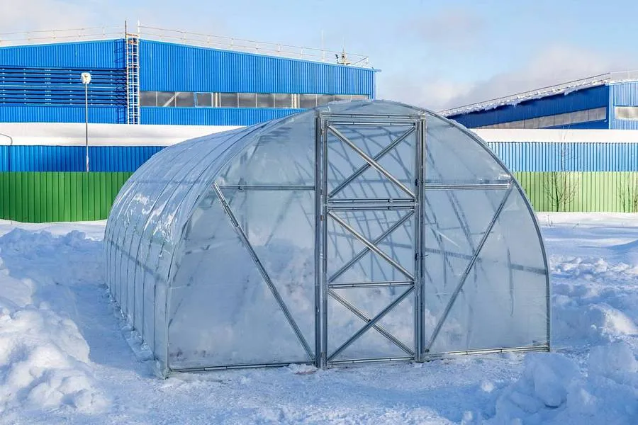 Ширина теплицы 3 метра. Этого хватит, чтобы установить внутри две-три грядки с удобными проходами. Минимальная длина теплицы – 4 метра. Она увеличивается с помощью дополнительных вставок (приобретаются отдельно).